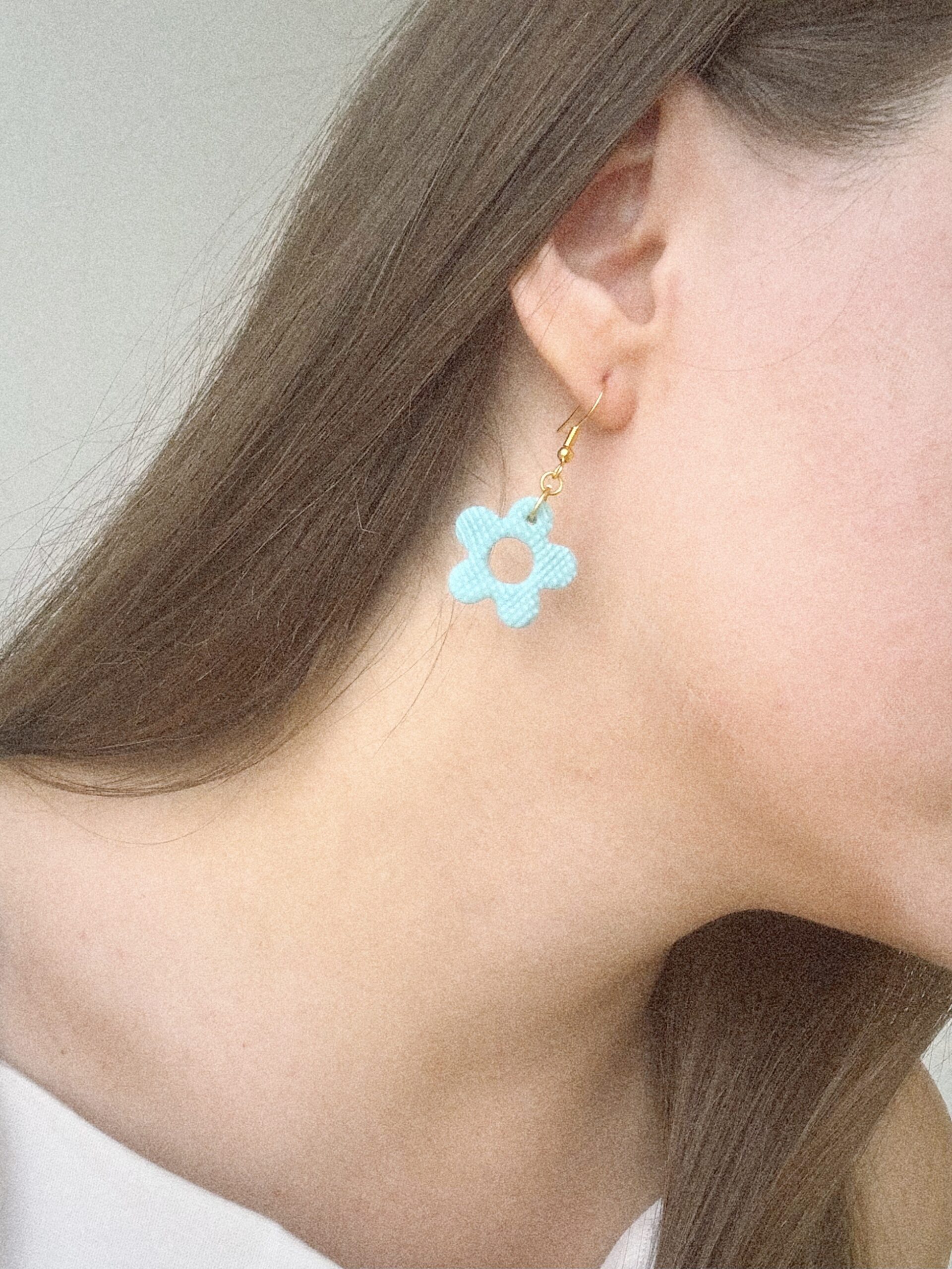 Helesinised lillelised kõrvarõngad, mis lisavad igale välimusele armsa, õrna ja romantilise puudutuse.